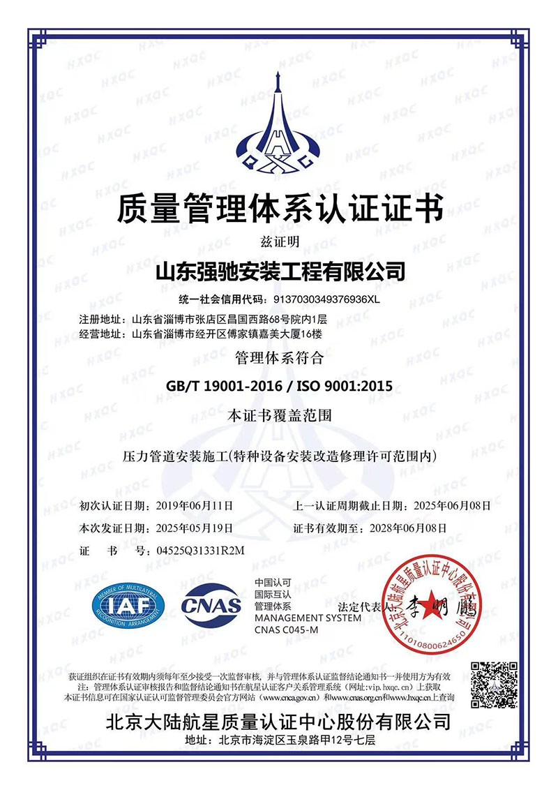 质量管理体系认证证...