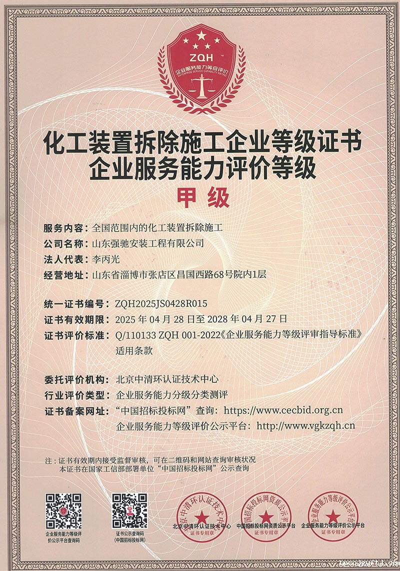 化工装置拆除证书
