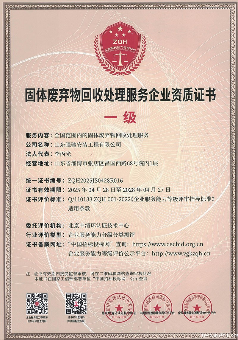 固体废弃物回收证书