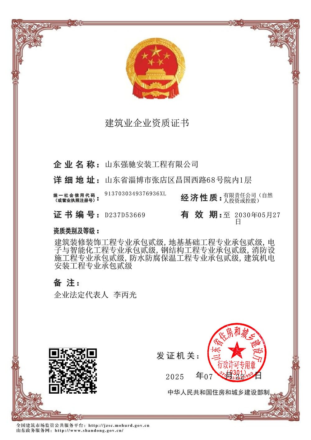 建筑业企业资质证书