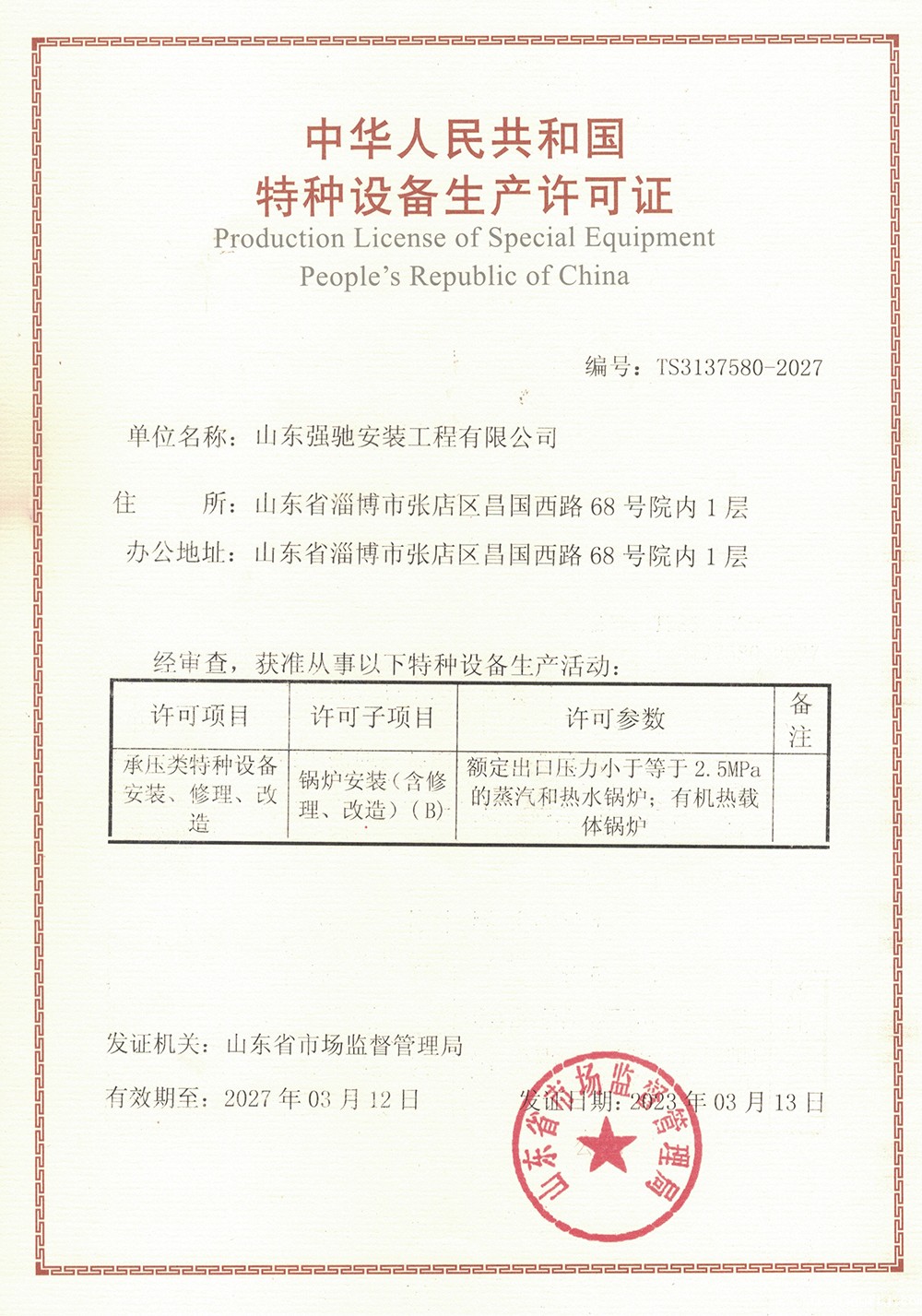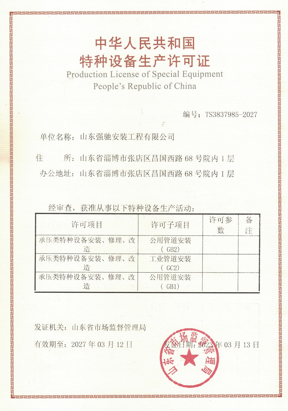 管道安装许可证
