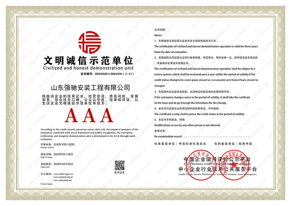 文明诚信示范单位证...
